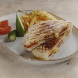 Bazlama ekmeğine: Pınar Dana sucuk, kaşar, salça, pul biber, kekik Patates kızartması, ...